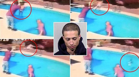 - ألقت الشرطة في ولاية أريزونا الأمريكية القبض على رجل ألقى بطفلته الرضيعة التي لم تتجاوز العام الواحد من العمر، إلى بركة السباحة بحجة أنه أراد أن يكسر حاجز الخوف لديها ويعلمها السباحة.